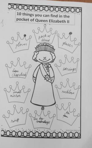 Pirmiausia, septintokai pristatė savo sukurtus plakatus bei papasakojo jiems įsimintiniausią faktą, susijusį su karaliene Elžbieta II. Mokiniai stengėsi surasti kažką naujo ir įdomaus apie šią ikonišką asmenybę bei pavaizduoti savo plakate. Kita užduotis buvo viktorina apie karalienės gyvenimą, šeimą, valdymo istoriją, laisvalaikį ir t.t. Po to mokiniai atliko kūrybines užduotis : dėliojo karalienės Elžbietos II citatų dėliones, fantazavo, kokius dešimt daiktų galėtų rasti karalienės kišenėse. Reikėjo ne tik sugalvoti kažką įdomaus ir originalaus, bet ir argumentuoti, kodėl vienas ar kitas daiktas ten galėtų būti, todėl mokiniams teko improvizuoti. Vėliau, septintokai rašė trumpus rašinėlius pagal pateiktą paveikslėlį bei raktinius žodžius. Kiekviena grupė pristatė savo sukurtą istoriją apie karalienę. Visa mokinių sukurta medžiaga buvo patalpinta atminimo sienoje.