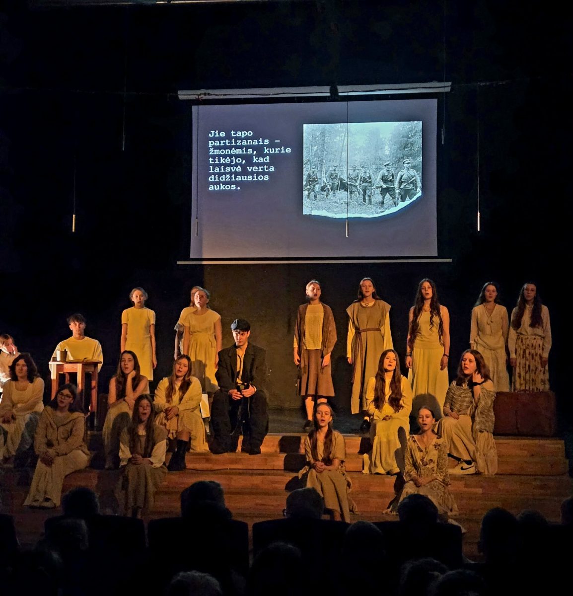 Šią jautrią kompoziciją kartu su mokiniais kūrė muzikos mokytojai Kęstutis ir Lina Jaskevičiai, teatro mokytojas Julius Ivanauskas, lietuvių kalbos mokytojos Daiva Ranonienė ir Alina Ratinskienė bei šokio mokytoja Vilma Gudinienė. Jų idėjos ir bendras darbas padėjo scenoje prabilti istorijai.