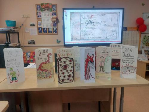 Fantastinių kūrinių aplinka, jų veikėjai nepanašūs į realųjį pasaulį. Apie tai integruotoje anglų kalbos bei lietuvių kalbos ir literatūros pamokoje kalbėjo 6b klasės mokiniai. Jie dalyvavo projekte „Stebuklingas hobito pasaulis“ ir vieni kitiems pristatė J.R.R.Tolkino knygos „Hobitas arba Ten ir atgal“ veikėjus, jų aplinką bei maistą. Buvo įdomu sužinoti, kokie skirtingi šio fantastinio kūrinio veikėjai, įvertinti, kaip juos įsivaizduoja lankstinukus parengę bendraklasiai. Smagiausia, žinoma, buvo ragauti tai, ką valgė kūrinio personažai ir įsivertinti savo darbą. Savo atsiliepimuose apie pamoką mokiniai džiaugėsi galimybe ne tik įsigilinti į kiekvieno veikėjo bruožus, bet ir įsivertinti savo gebėjimus sklandžiai kalbėti angliškai bei lietuviškai, padirbėti grupėmis.