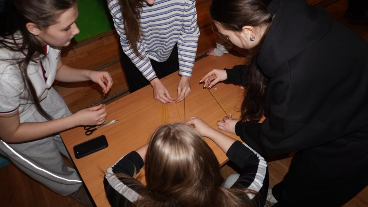 Po intensyvių rungčių mokinių laukė skani vakarienė, kuria tradiciškai pasirūpino Mokinių tarybos „maisto fėja“ Emilija G. su komanda. Pasistiprinę mokiniai grįžo į salę, kur jų laukė inžinerinė užduotis – pastatyti kuo aukštesnį bokštą iš 20 spagečių ir vieno zefyro. Komandos kūrybiškai ieškojo sprendimų, kad bokštas būtų ne tik aukštas, bet ir tvirtas, kol vedėja Ugnė V. jį išmatuos.